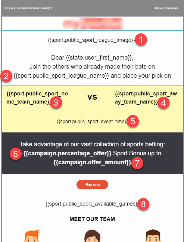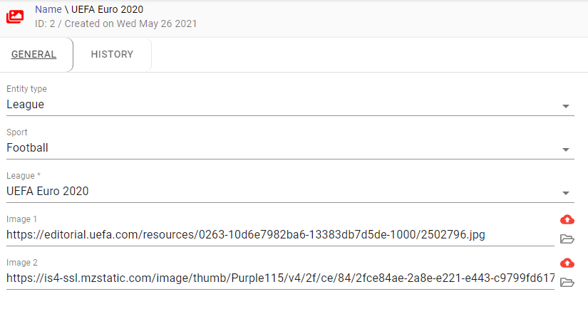 Each Sport type, League, and Team can be assigned with 2 images which can then be used in the creative resources to make the communication not only personalized per event but also more interesting.