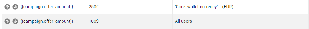 6. Optional way of personalizing the offers for the users, you can create a different offer for each profile of a user. For example 100% to all users but 400% to Bronze VIPs