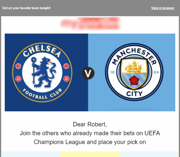 2. The League name of the match that has triggered the campaign will be populated here (e.g UEFA Champions League).
