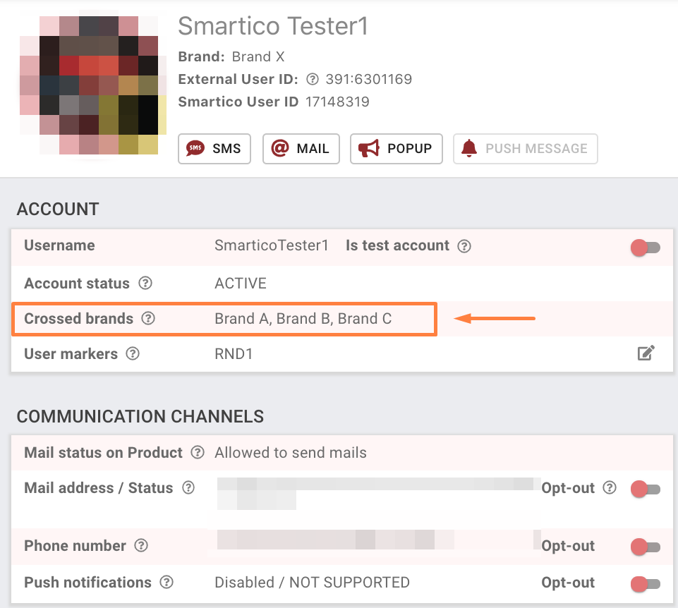 Cross-brand information will be also available on the user profile screen. There, you can check the brands on which the user has active accounts.